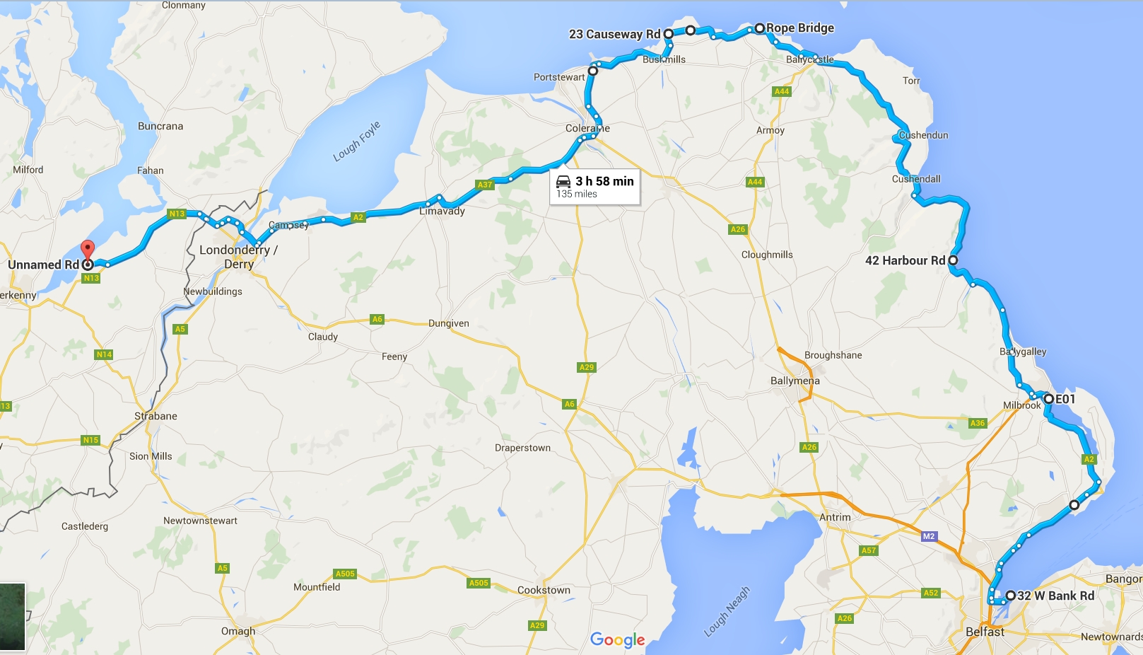 Day 1 – Ferry from Cairnryan to Belfast (would have gone from Troon, but that service ends at the end of September), head north around the Antrim coast, pop into southern Ireland via Derry into Donegal, staying near Letterkenny.