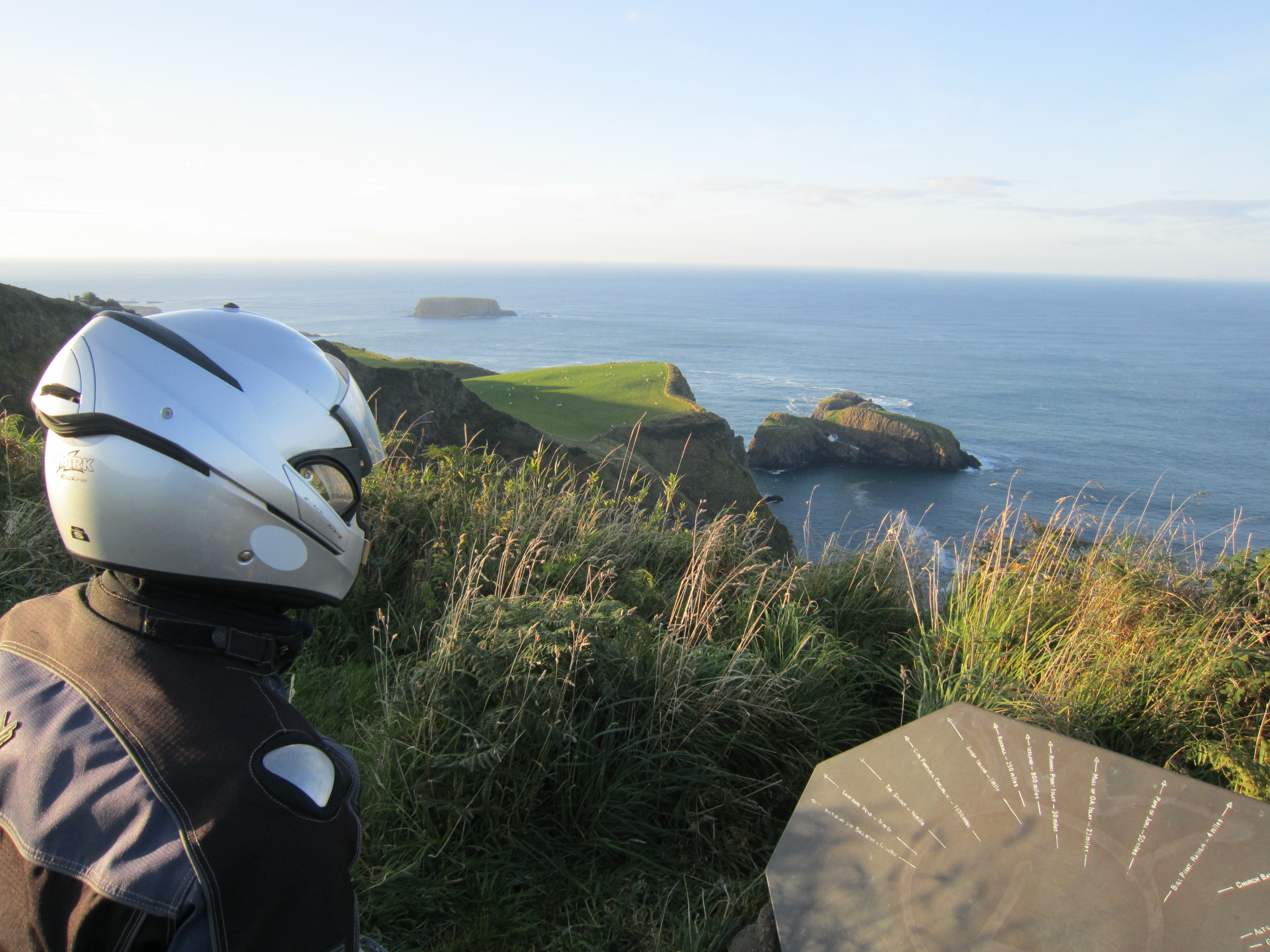 Antrim is very pretty, lovely coast road with enough twisties to keep me happy. Heading west there’s a handy car park a mile or so before the Carrick-a-rede rope bridge that affords a nice view of the bridge.