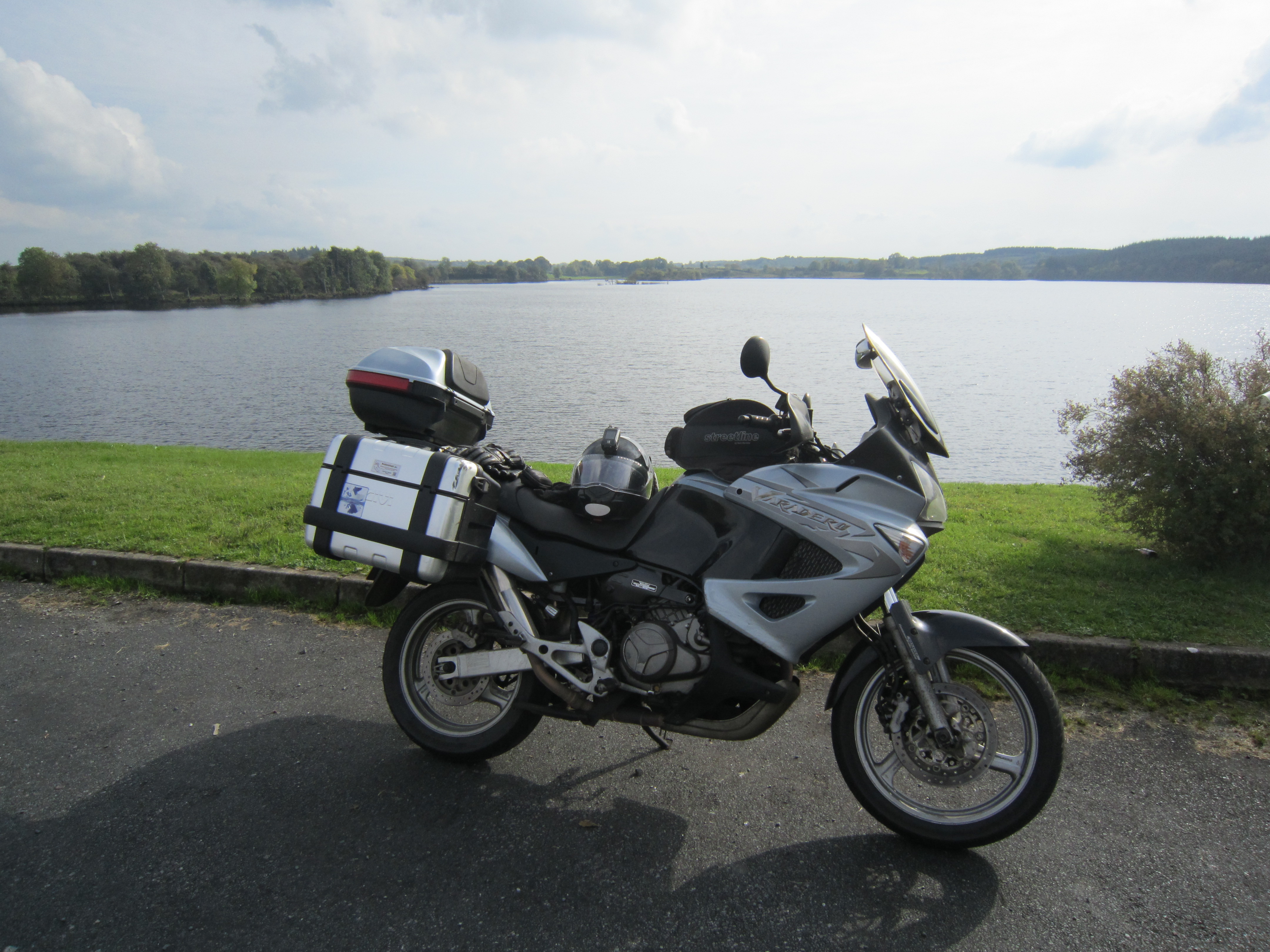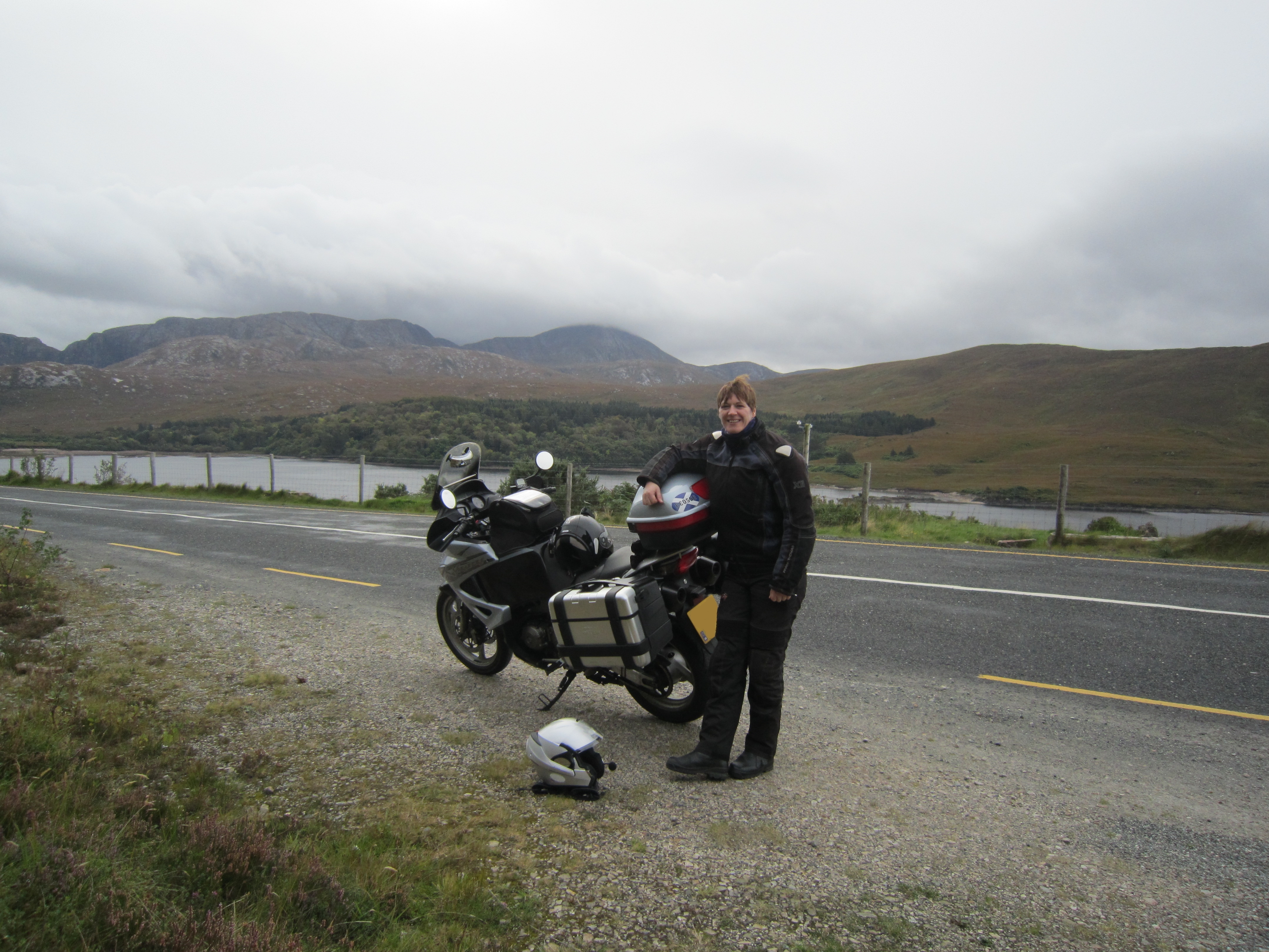 Monday was simply a case of get to the ferry, and get home. The only nice road was from Carnlough up to the motorway, and then just a zoom to Larne. We diverted off the main road at Larne to find a petrol station before going to the ferry as we had loads of time. The weather was cooler today, windy, and the odd sharp shower. Happily the showers stayed away while we waited to board the ferry, but Sharon had to don her helmet long before then just to keep the chill off her neck and ears.