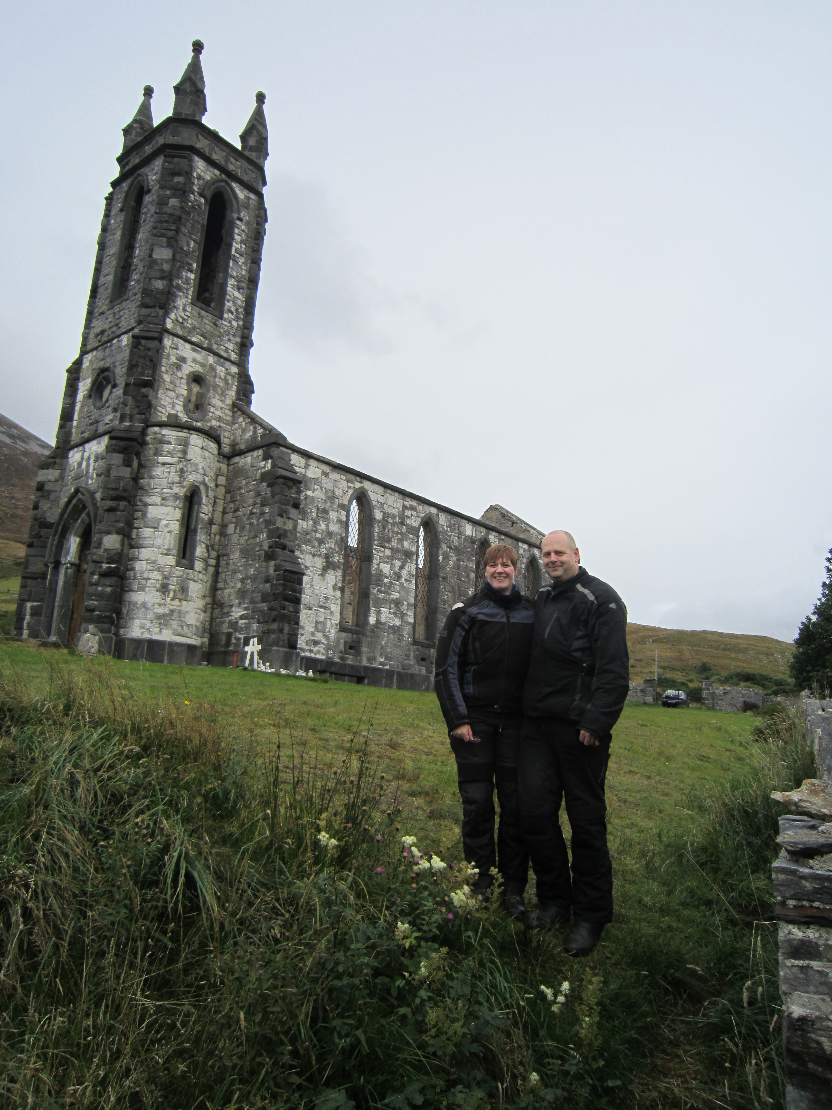 Sharon spotted a ruined church, down a road signposted as the ‘Poisoned Glen’ – Google maps says it’s Dunlewey – The Lonely Planet explains how it got it’s name :