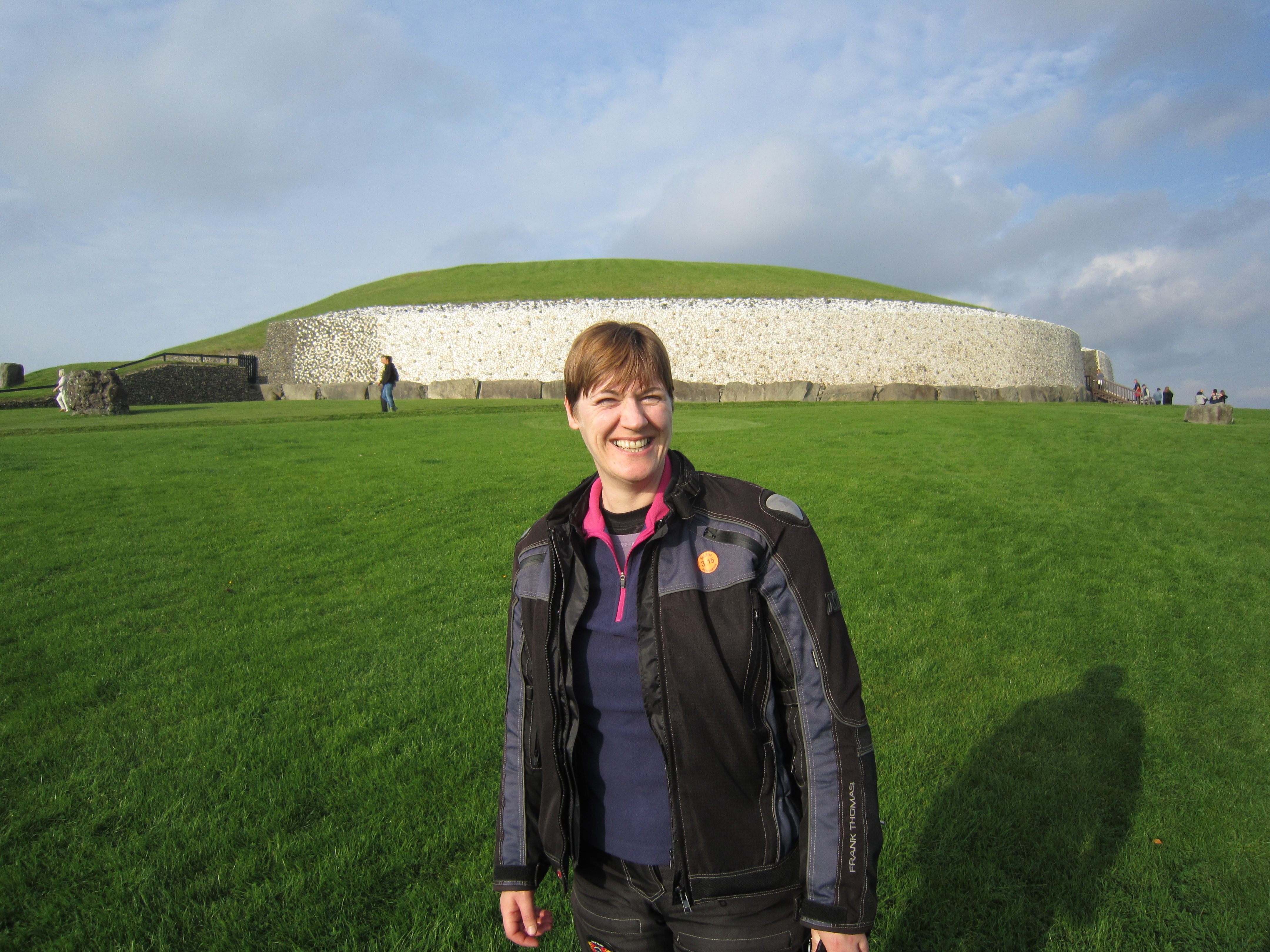 Sunday was our last day, a bit of motorway like road had me bored pretty quickly so I looked for an alternative route that would keep us off the main roads. That was a definite improvement. We stopped in at the Newgrange site – leaving the lids and tank bag at the visitor centre we got the bus up to the Newgrange site – remarkable to consider it pre-dates Stonehenge by one thousand years, and the great pyramids by five hundred years! Although the external walls have had to be rebuilt, inside the site is amazing – 5,000 years old and still watertight!! We had the warmest weather of the trip here – should have brought the water bottles off the bike along with us. We were parched by the time we got back to the bike.