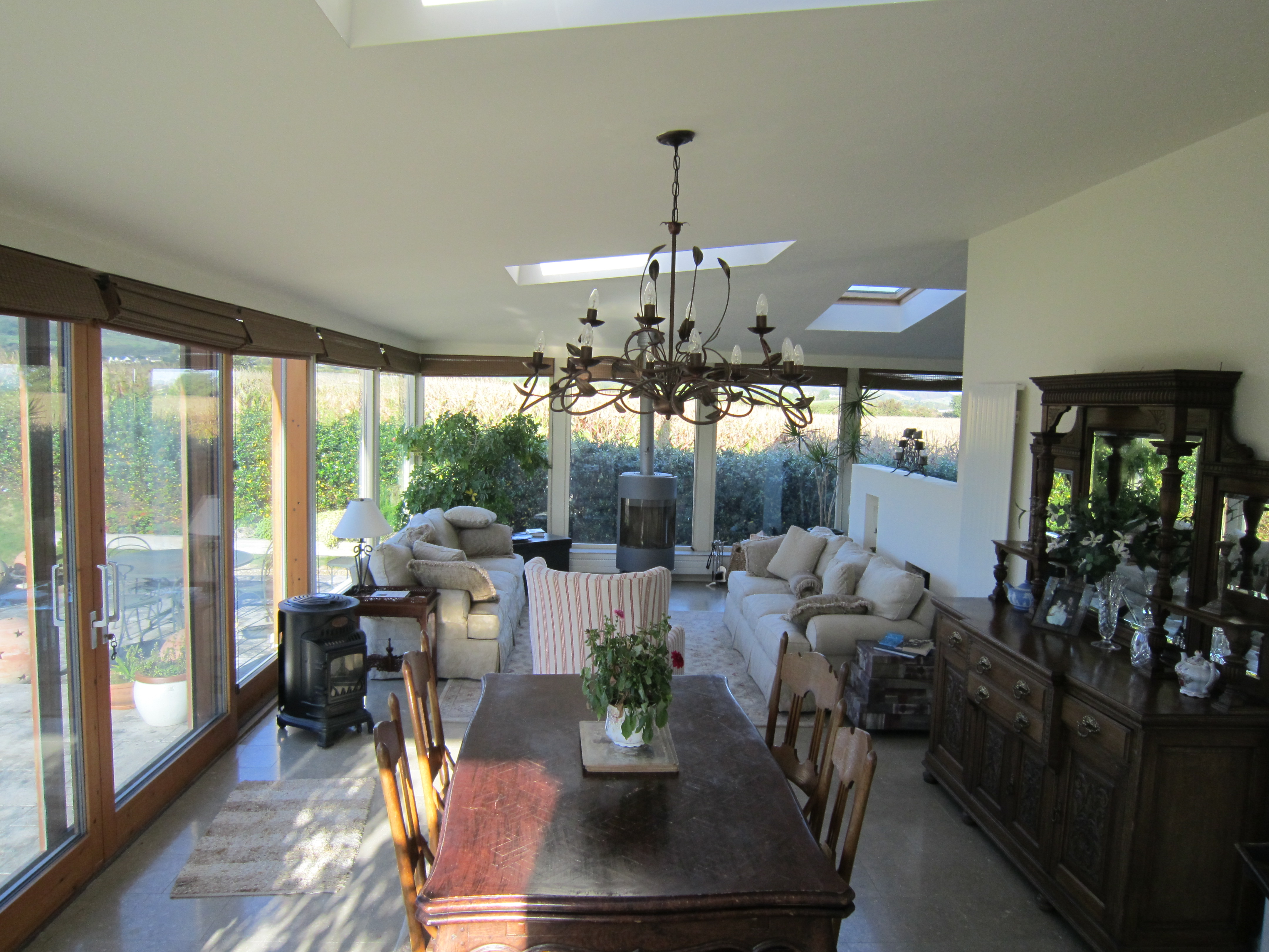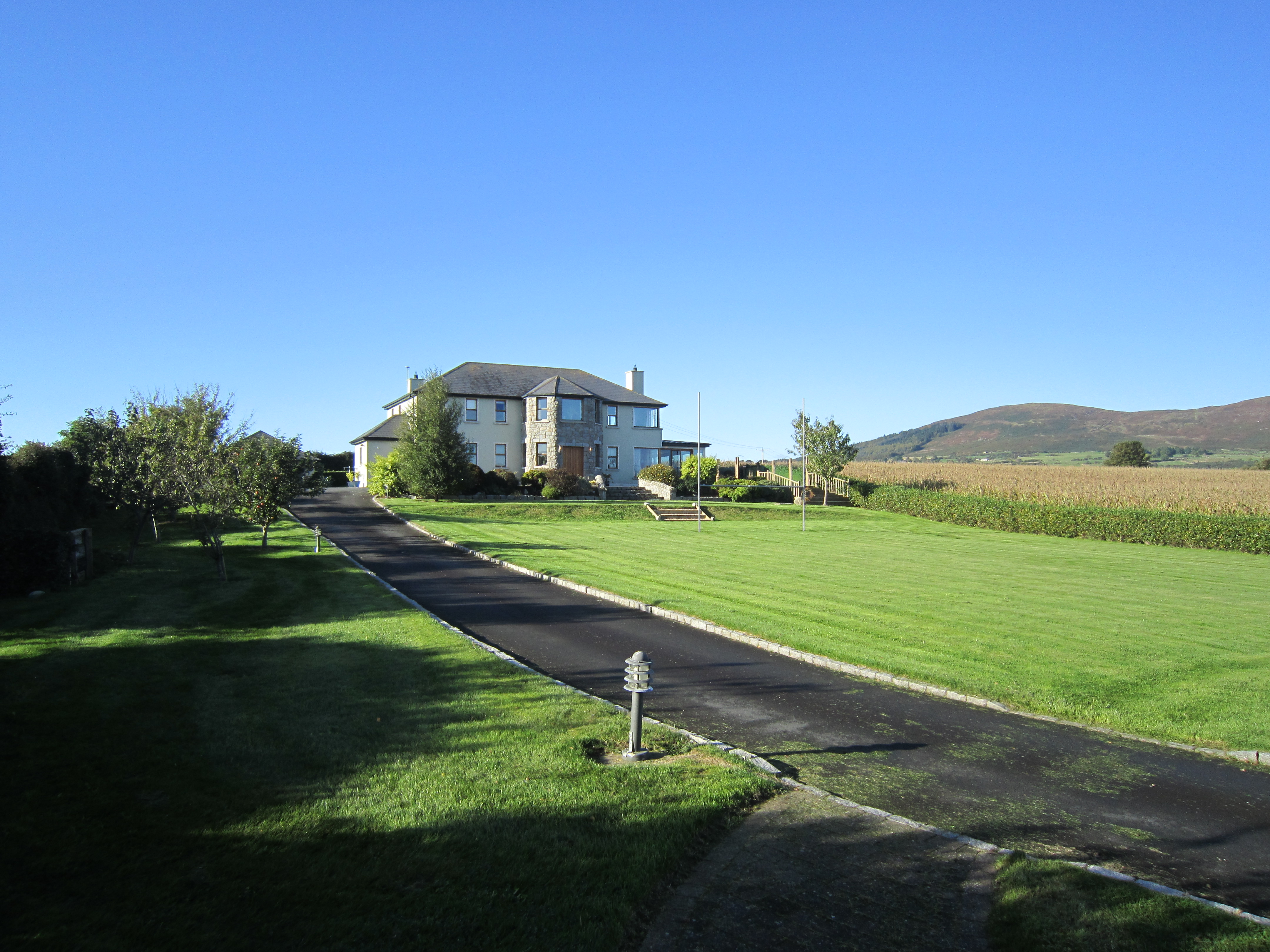 Since it was now dark, the satnav was again pressed into service and we found our way to our final night’s accommodation. Turning into the driveway I wondered if there was some mistake… the grounds were so big, the house so big, I wondered if it was a private school… Pulling up beside the house we could see someone sitting in the kitchen, who turned out to be a friend of the host, Eve, who’d been called away at short notice. After a brief tour of the huge house, we were handed the keys and left on our own once more, in someone else’s house! We sat in one of the lounges, wondering at the space, the furnishings, the potential view… it was pitch dark…