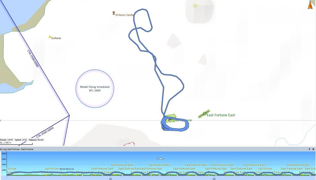 Saturday the weather was glorious – as the pic above shows. Sunday was murky and cloudy and we were restricted to 500ft max to keep below the cloud base – sometimes just 400ft. Not a great day for flying, but ok for circuits and we did plenty.